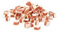 Sammansättning: tonfisk (35 %), kycklingkött (30 %), sej (18 %), sötpotatisstärkelse, glycerin, sorbitol, sojaprotein, mineraler | glutenfritt | utan tillsatt socker | Förvaras svalt och torrt.